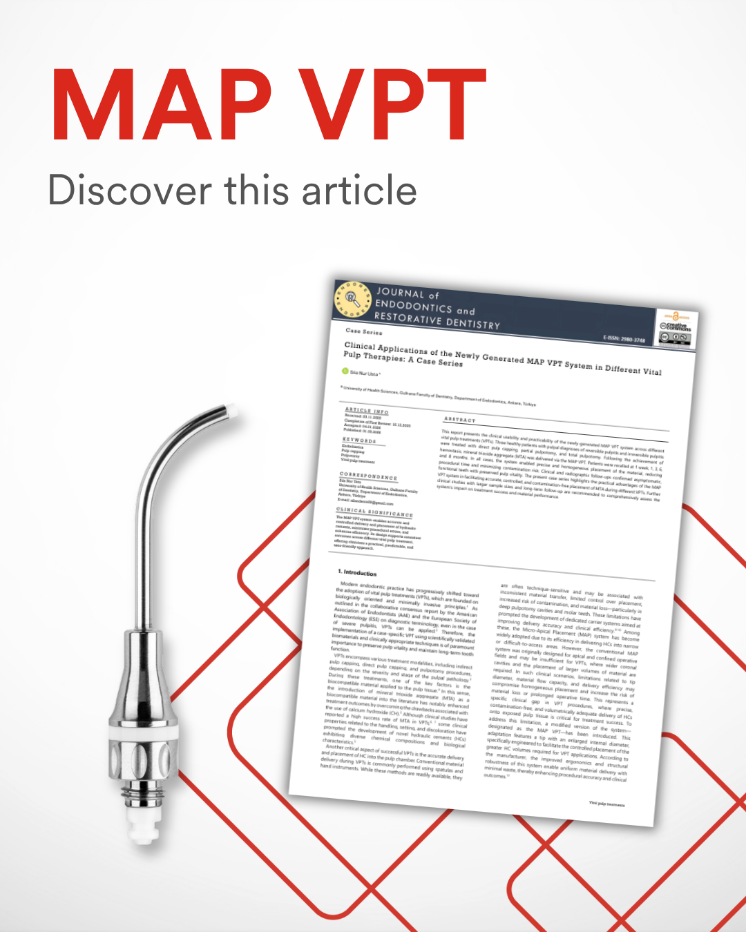 This report presents the clinical usability and practicability of the newly-generated MAP VPT system across different vital pulp treatments (VPT). Three healthy patients with pulpal diagnoses of reversible pulpitis and irreversible pulpitis were treated with direct pulp capping, partial pulpotomy, and total pulpotomy. Following the achievement of hemostasis, mineral trioxide aggregate (MTA) was delivered via the MAP VPT. Patients were recalled at 1 week, 1, 3, 6, and 8 months. In all cases, the system enabled precise and homogeneous placement of the material, reducing procedural time and minimizing contamination risk. Clinical and radiographic follow-ups confirmed asymptomatic, functional teeth with preserved pulp vitality. The present case series highlights the practical advantages of the MAP VPT system in facilitating accurate, controlled, and contamination-free placement of MTA during different VPTs. Further clinical studies with larger sample sizes and long-term follow-up are recommended to comprehensively assess the system’s impact on treatment success and material performance.