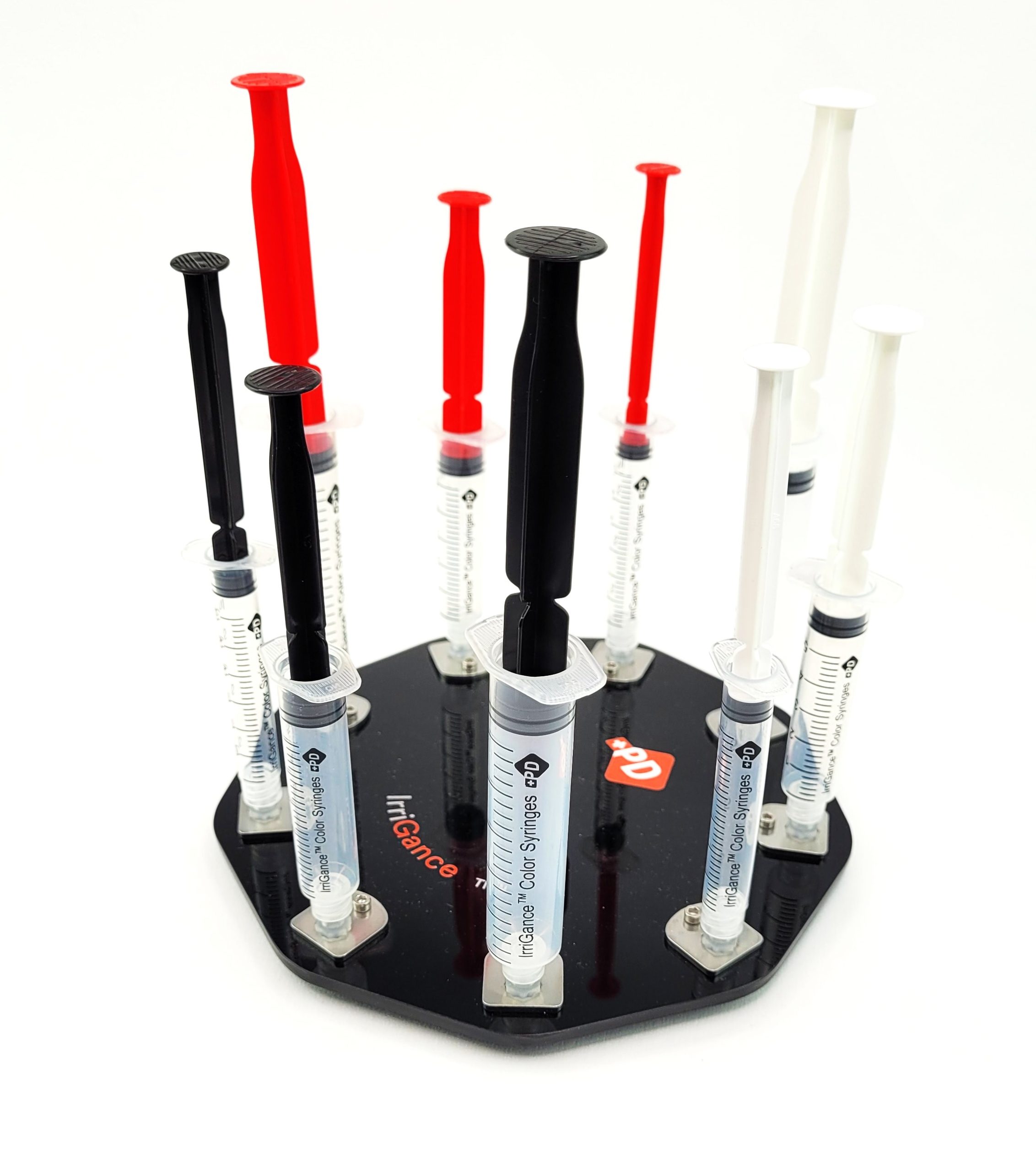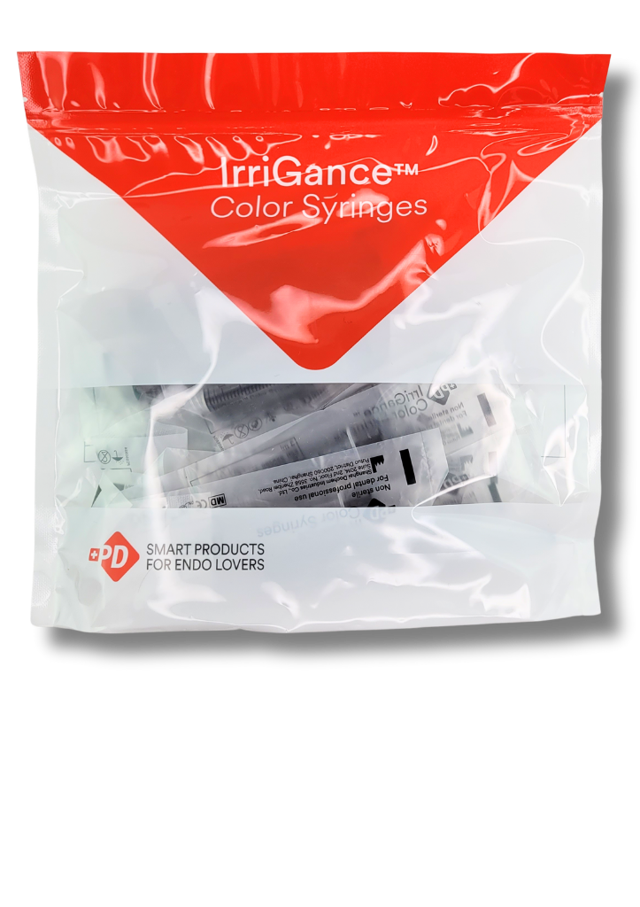 IrriGance™ Color Syringes are a range of Luer Lock syringes designed for root canal irrigation in endodontic treatments. Their colored plungers allow clear organization of irrigants by type (EDTA, sodium hypochlorite, saline solution, etc.). The range is available in 3, 5, and 10 ml formats.